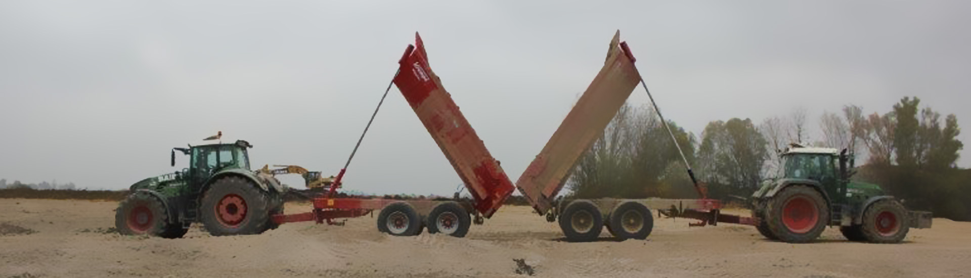 Schüttguttransporte auf Großbaustellen mit Traktoren und Muldenkippern oder Containeranhänger
